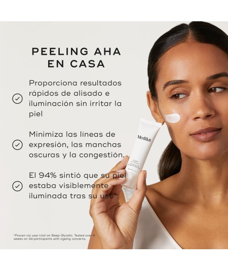 Sleep Glycolic elimina las células muertas de la superficie de la piel para revelar un cutis visiblemente más liso y luminoso, con un tono y una textura más uniformes.