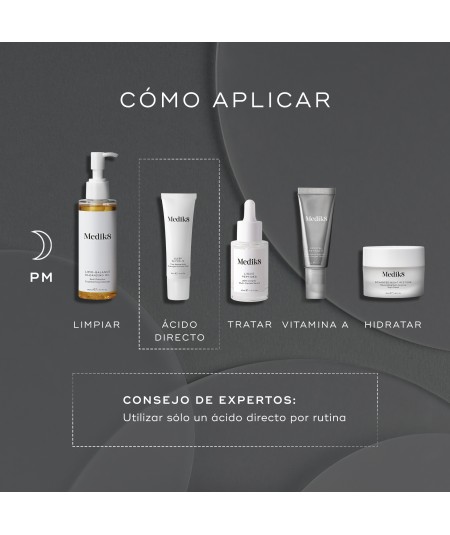 Reaviva visiblemente la textura de la piel, alisa la apariencia de líneas finas y arrugas, y minimiza el aspecto de hiperpigmentación. También reduce la congestión y la probabilidad de que se formen manchas.