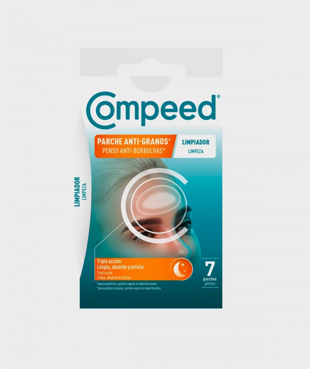 Compeed Parche Anti-Granos Limpiador Triple Accion son apósitos hidrocoloides ideales para usar durante la noche, para que despiertes con una piel suave, sin resecarla. Ayudan a limpiar tu piel, absorben el exceso de sebo y exfolian las impurezas, dejando la piel más suave y radiante.